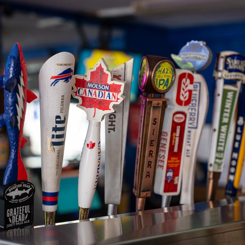 Sam Adams seasonal, Coors light, Molson, Miller lite, Pabst blue ribbon, Blue moon, EBC blueberry, Sierra Nevada Hazy IPA, Genny cranberry orange ale, Dog Fish Head Grateful dead pale ale